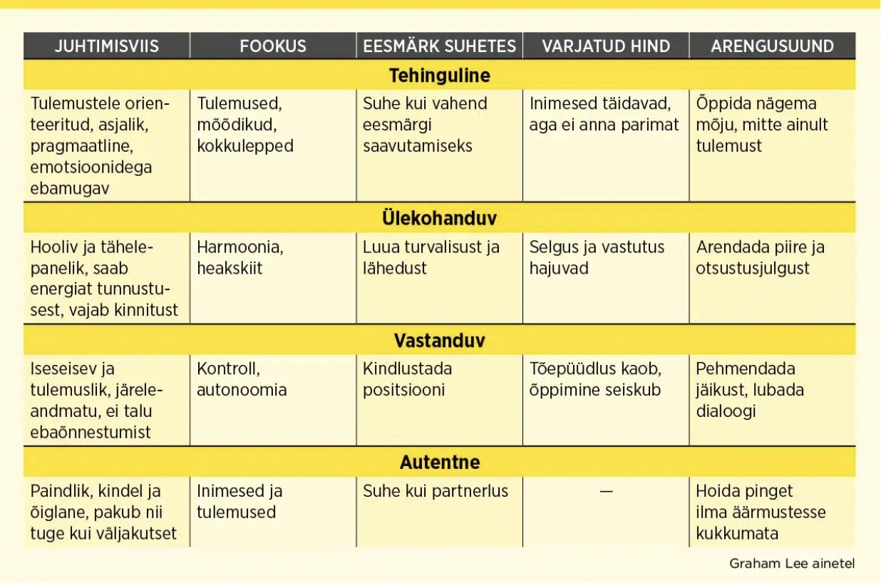 Need pole püsivad juhtimisstiilid, vaid -mustrid, mis kipuvad aktiveeruma ennekõike pinge ja ebakindluse tingimustes.